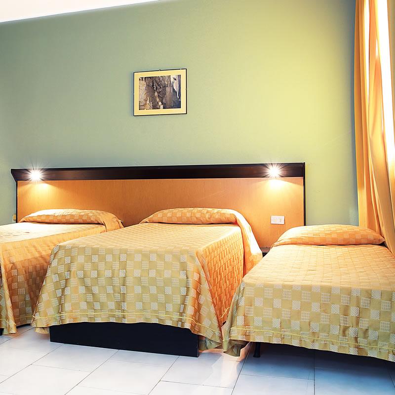 La chambre triple Superior se compose d'une chambre double et d'une chambre simple reliées par une petite entrée. Dotée d'un balcon et de 2 salles de bains, on y accède directement depuis le hall de l'hôtel. Le ménage quotidien, le changement journalier des serviettes et le changement des draps deux fois par semaine sont inclus.